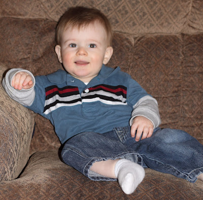My baby boy is 11 months old today! How did that happen so quickly? I would have to say that before Christmas, when all the decorations were spread all over the house, I hated this mobile, get into everything, stage. But now that we have officially baby-proofed our home and put up a gate, I’m really loving this age! Orin is so interactive and intent on making us laugh constantly. He’s one silly boy and we can’t get enough of his fun, loveable self. We seriously giggle all day long. I LOVE being able to stay home with him!!